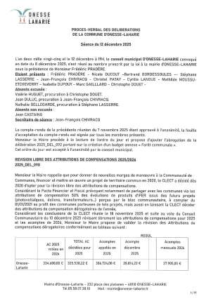 Procès verbal conseil municipal du vendredi 12 décembre 2025