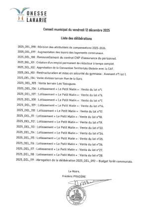 Délibérations conseil municipal du vendredi 12 décembre 2025