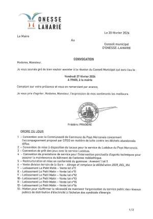 convocation conseil municipal du vendredi 27 février 2026
